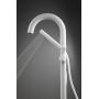 Bateria kolumnowa do wanien wolnostojących w wykończeniu matowe białe Bianco zachwyca subtelnością i minimalistycznym designem. Wylewka w kształcie litery „U” doskonale wpisuje się w nowoczesne trendy, dodając elegancji i harmonii każdej łazience. Wyposażona w wąż z systemem Anti-Twist, zapobiegający skręcaniu, oraz słuchawkę prysznicową o delikatnym strumieniu deszczowym, bateria zapewnia wyjątkowy komfort użytkowania. Mosiężny korpus i ceramiczna głowica gwarantują niezawodność i trwałość produktu. Regulowany kąt nachylenia słuchawki oraz precyzyjny, ceramiczny przełącznik funkcji czynią model nie tylko estetycznym, ale również bardzo praktycznym. Matowe białe wykończenie podkreśla świeżość i czystość formy.