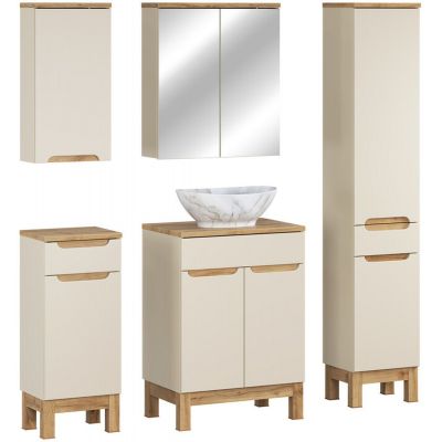 Opis zestawu Comad Bali Cashmere zestaw meblowy 60 cm szafka stojąca z umywalką Pati i szafki boczne stojące/wiszące/lustrzana kaszmir/biały SET-BAC B WOTAN 60CM UN PATI HC MC