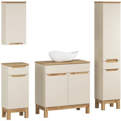 Opis zestawu Comad Bali Cashmere zestaw meblowy 80 cm szafka stojąca z umywalką Cloud i szafki boczne stojące/wisząca kaszmir/biały SET-BAC B WOTAN 80CM UN CLOUD HC LC