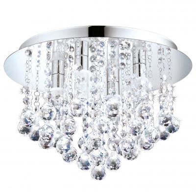 Łazienkowa lampa sufitowa z serii ALMONTE wykonana jest z chromowanej stali i przezroczystego kryształu. Posiada izolację ochronną oraz stopień ochrony IP44. Wyposażona jest w cztery żarówki LED G9, które emitują ciepłe, białe światło