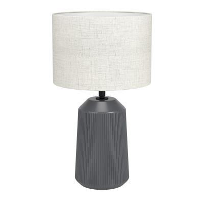 Lampa stołowa CAPALBIO składa się z szarej, ceramicznej podstawy, o ryflowanej strukturze oraz, beżowego, tekstylnego abażura. Lniany abażur w połączeniu z szarą podstawą zapewnia naturalne połączenie kolorystyczne. Lampkę można włączać za pomocą włącznika znajdującego się na przewodzie zasilającym. Lampa stołowa przyciąga wzrok w każdym pomieszczeniu - czy to w sypialni na stoliku nocnym, w salonie, jadalni, czy w przedpokoju na kredensie. Żarówka nie wchodzi w zakres dostawy. Do lampy pasują żarówka z trzonkiem E27.