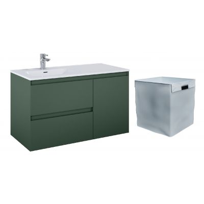 Zestaw Elita Split szafka 100 cm podumywalkowa wisząca lewa z wkładem do kosza zielony mat (RE011006057010, RE199488000010)