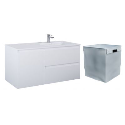Zestaw Elita Split szafka 100 cm podumywalkowa wisząca z wkładem do kosza biały mat (RE011005055290, RE199488000010)