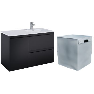 Zestaw Elita Split szafka 100 cm podumywalkowa wisząca z wkładem do kosza czarny mat (RE011005057160, RE199488000010)