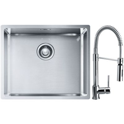 Franke Box BXX 110-50/BXX 210-50 zlewozmywak 54x45 cm stalowy z baterią kuchenną Coxy chrom (1270453656, 1150159732)