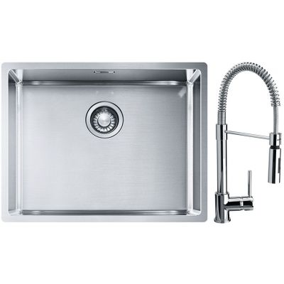 Franke Box BXX 110-54/ BXX 210-54 zlewozmywak 58x45 cm stalowy z baterią kuchenną Coxy chrom (1270453660, 1150159732)