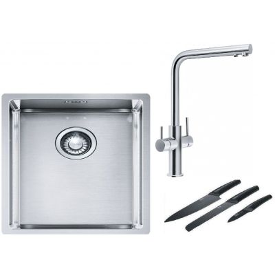 Franke Box BXX 210/110-34 zlewozmywak 38x45 cm stalowy z baterią kuchenną Neptune Clear Water chrom (1270453653, 1150370689)