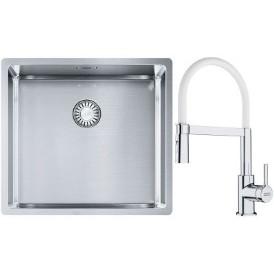 Franke Box BXX 210/110-45 zlewozmywak 49x45 cm stalowy z baterią kuchenną Lina chrom/biały (1270453655, 1150626088)