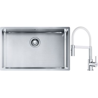 Franke Box BXX 210/110-68 zlewozmywak 72,5x45 cm stalowy z baterią kuchenną Lina chrom/biały (1270453658, 1150626088)