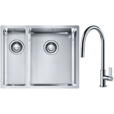 Franke Box BXX 260/160-34-16 zlewozmywak 56x45 cm stalowy z baterią kuchenną Ambient chrom (1270369916, 1150373947)