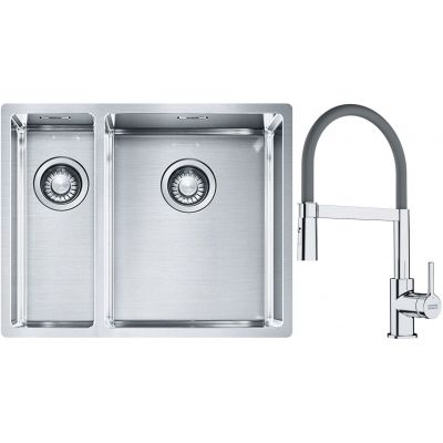 Franke Box BXX 260/160-34-16 zlewozmywak 56x45 cm stalowy z baterią kuchenną Lina chrom/szary (1270369916, 1150626087)