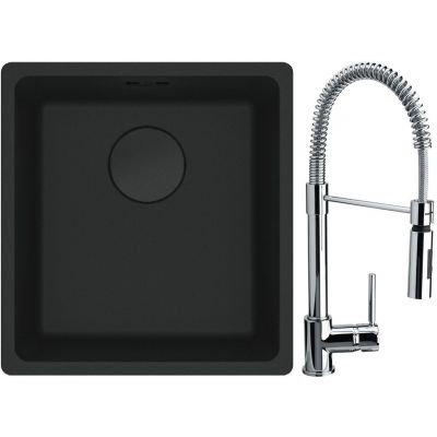 Franke Maris MRG 110-37 zlewozmywak 40x37 cm Fragranit + czarny mat z baterią kuchenną Coxy chrom (1250697760, 1150159732)