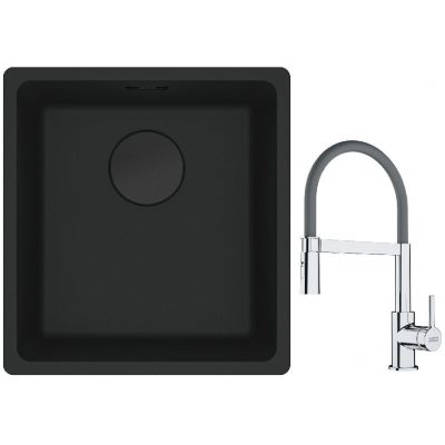 Franke Maris MRG 110-37 zlewozmywak 40x37 cm Fragranit + czarny mat z baterią kuchenną Lina chrom/szary (1250697760, 1150626087)