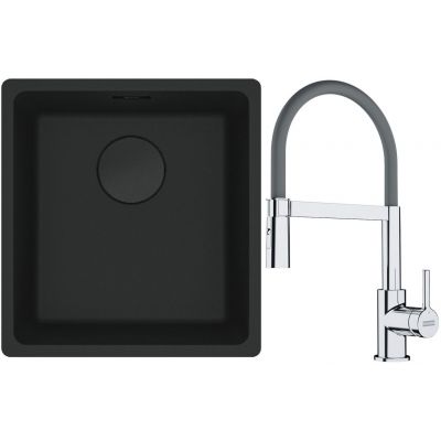 Franke Maris MRG 110-37 zlewozmywak 40x37 cm Fragranit + czarny mat z baterią kuchenną Lina chrom/szary (1250697760, 1150626087)
