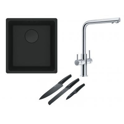Franke Maris MRG 110-37 zlewozmywak 40x37 cm Fragranit + czarny mat z baterią kuchenną Neptune Clear Water chrom (1250697760, 1150370689)