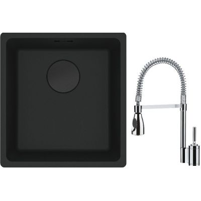Franke Maris MRG 110-37 zlewozmywak 40x37 cm Fragranit + czarny mat z baterią kuchenną Sentinel chrom (1250697760, 1150029591)