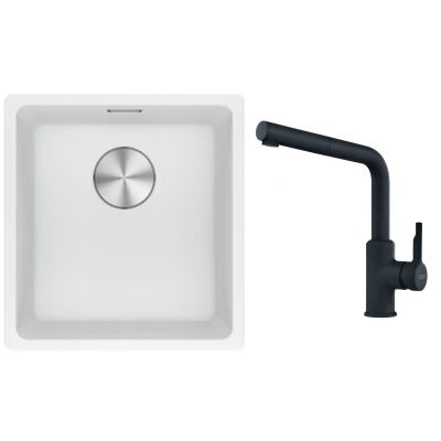 Franke Maris MRG 110-37 zlewozmywak 40x37 cm Fragranite biały polarny z baterią kuchenną Urban czarny mat (1250687251, 1150627523)