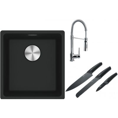 Franke Maris MRG 110-37 zlewozmywak 40x37 cm Fragranite czarny mat z baterią kuchenną Coxy chrom (1250687248, 1150159732)