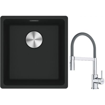 Franke Maris MRG 110-37 zlewozmywak 40x37 cm Fragranite czarny mat z baterią kuchenną Lina chrom/szary (1250687248, 1150626087)