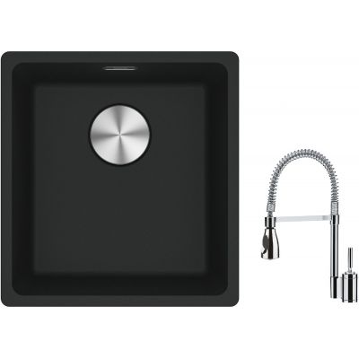 Franke Maris MRG 110-37 zlewozmywak 40x37 cm Fragranite czarny mat z baterią kuchenną Sentinel chrom (1250687248, 1150029591)