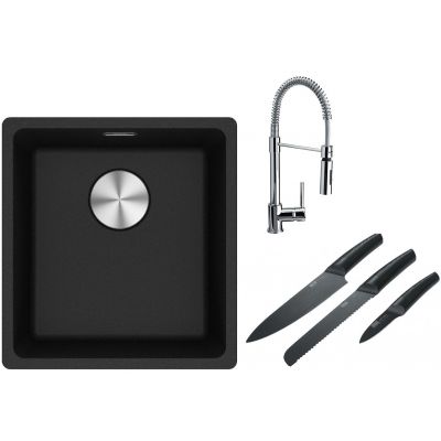 Franke Maris MRG 110-37 zlewozmywak 40x37 cm Fragranite onyx z baterią kuchenną Coxy chrom (1250687249, 1150159732)