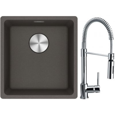 Franke Maris MRG 110-37 zlewozmywak granitowy 43x40 cm łupkowy szary z baterią kuchenną Coxy chrom (1250716374, 1150159732)