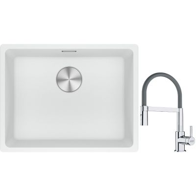 Franke Maris MRG 110-52 zlewozmywak 52x40 cm Fragranite biały polarny z baterią kuchenną Lina chrom/szary (1250687255, 1150626087)