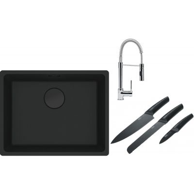 Franke Maris MRG 110-52 zlewozmywak 52x40 cm Fragranite czarny mat z baterią kuchenną Coxy chrom (1250697759, 1150159732)