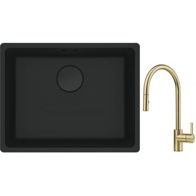Franke Maris MRG 110-52 zlewozmywak 52x40 cm Fragranite czarny mat z baterią kuchenną Eos Neo M Pull-Out Spray złotą (1250697759, 1150681244)
