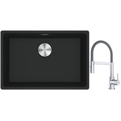 Franke Maris MRG 110-52 zlewozmywak 52x40 cm Fragranite czarny mat z baterią kuchenną Lina chrom/szary (1250687252, 1150626087)