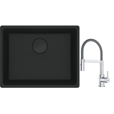 Franke Maris MRG 110-52 zlewozmywak 52x40 cm Fragranite czarny mat z baterią kuchenną Lina chrom/szary (1250697759, 1150626087)