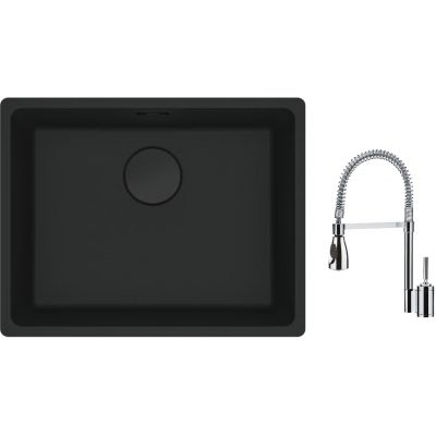 Franke Maris MRG 110-52 zlewozmywak 52x40 cm Fragranite czarny mat z baterią kuchenną Sentinel chrom (1250697759, 1150029591)