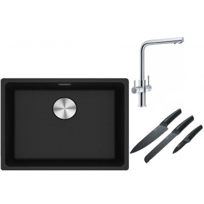 Franke Maris MRG 110-52 zlewozmywak 52x40 cm Fragranite onyx z baterią kuchenną Neptune Clear Water chrom (1250687253, 1150370689)