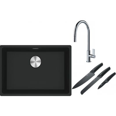 Franke Maris MRG 110-62 zlewozmywak 62x40 cm Fragranite czarny mat z baterią kuchenną Ambient chrom (1250687256, 1150373947)