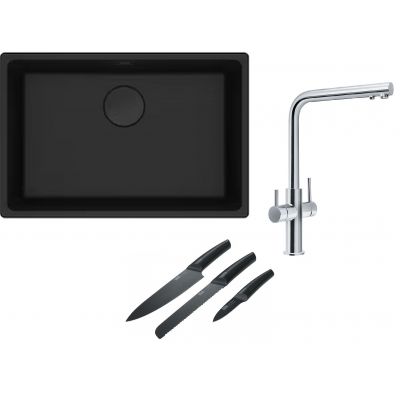 Franke Maris MRG 110-62 zlewozmywak 62x40 cm Fragranite czarny mat z baterią kuchenną Neptune Clear Water chrom (1250697758, 1150370689)