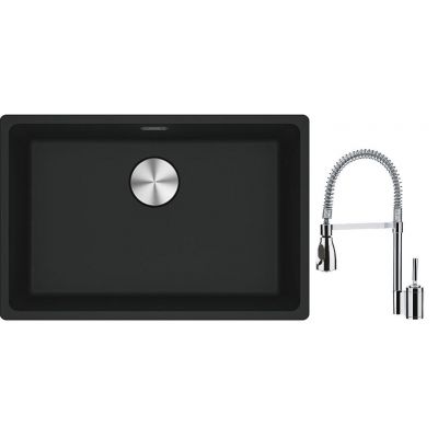 Franke Maris MRG 110-62 zlewozmywak 62x40 cm Fragranite czarny mat z baterią kuchenną Sentinel chrom (1250687256, 1150029591)