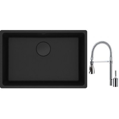 Franke Maris MRG 110-62 zlewozmywak 62x40 cm Fragranite czarny mat z baterią kuchenną Sentinel chrom (1250697758, 1150029591)