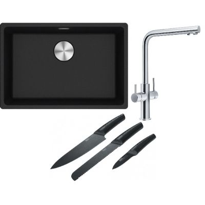 Franke Maris MRG 110-62 zlewozmywak 62x40 cm Fragranite onyx z baterią kuchenną Neptune Clear Water chrom (1250687257, 1150370689)