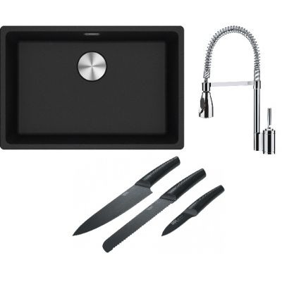 Franke Maris MRG 110-62 zlewozmywak 62x40 cm Fragranite onyx z baterią kuchenną Sentinel chrom (1250687257, 1150029591)