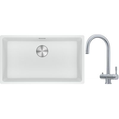 Franke Maris MRG 110-72 zlewozmywak 72x40 cm Fragranite biały polarny z baterią kuchenną Coxy chrom (1250687263, 1150159732)
