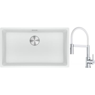 Franke Maris MRG 110-72 zlewozmywak 72x40 cm Fragranite biały polarny z baterią kuchenną Lina chrom/biały (1250687263, 1150626088)
