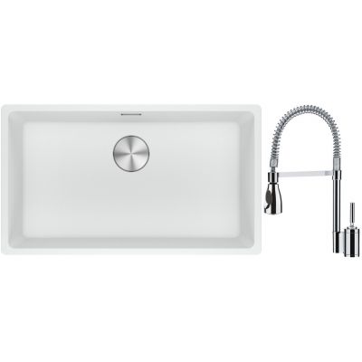 Franke Maris MRG 110-72 zlewozmywak 72x40 cm Fragranite biały polarny z baterią kuchenną Sentinel chrom (1250687263, 1150029591)