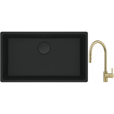 Franke Maris MRG 110-72 zlewozmywak 72x40 cm Fragranite czarny mat z baterią kuchenną Eos Neo M Pull-Out Spray złotą (1250697757, 1150681244)
