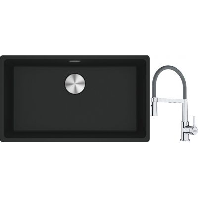 Franke Maris MRG 110-72 zlewozmywak 72x40 cm Fragranite czarny mat z baterią kuchenną Lina chrom/szary (1250687260, 1150626087)