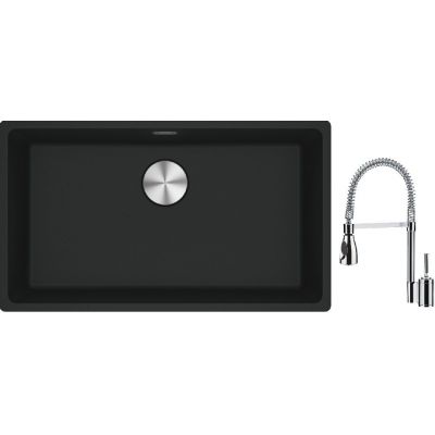 Franke Maris MRG 110-72 zlewozmywak 72x40 cm Fragranite czarny mat z baterią kuchenną Sentinel chrom (1250687260, 1150029591)