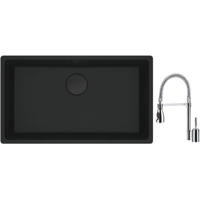 Franke Maris MRG 110-72 zlewozmywak 72x40 cm Fragranite czarny mat z baterią kuchenną Sentinel chrom (1250697757, 1150029591)