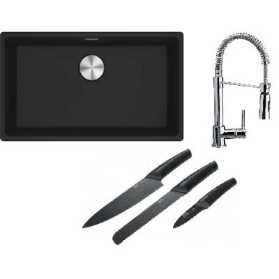 Franke Maris MRG 110-72 zlewozmywak 72x40 cm Fragranite onyx z baterią kuchenną Coxy chrom (1250687261, 1150159732)