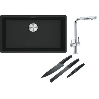 Franke Maris MRG 110-72 zlewozmywak 72x40 cm Fragranite onyx z baterią kuchenną Neptune Clear Water chrom (1250687261, 1150370689)