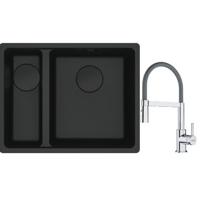 Franke Maris MRG 160-34-15SBL zlewozmywak 52x40 cm Fragranite czarny mat z baterią kuchenną Lina chrom/szary (1250697756, 1150626087)