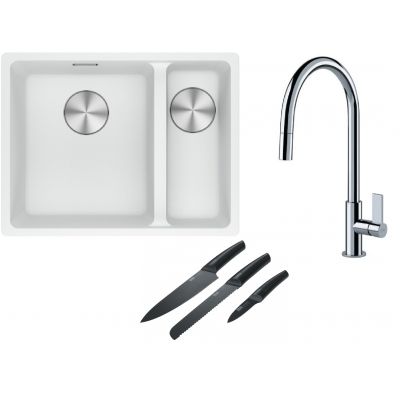 Franke Maris MRG 160-34-15SBR zlewozmywak 52x40 cm Fragranite biały polarny z baterią kuchenną Ambient chrom (1250687267, 1150373947)